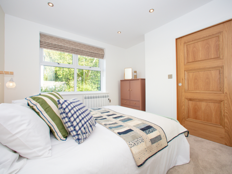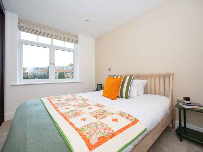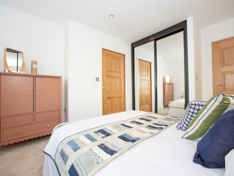 Flat 4 is one of the few apartments in the development that benefits from elevated first‑floor views across the mature, tree‑lined grounds of Spinning Acres, giving the living space a brighter, more open feel.